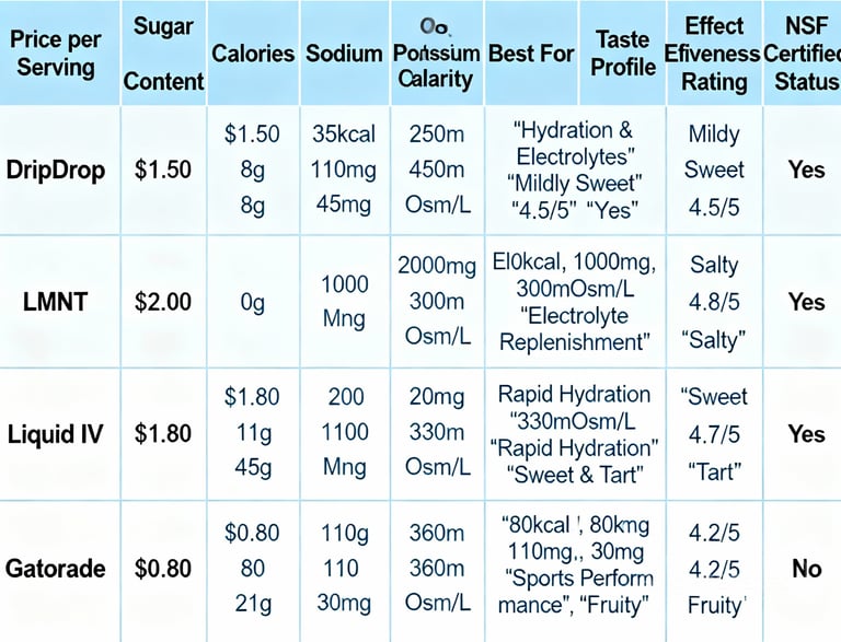 DripDrop's Value Proposition: While not the absolute cheapest cost-per-serving, DripDrop delivers superior effectiveness and balanced electrolyte ratios, making it best zero sugar sports drink value for those prioritizing absorption efficiency and health markers over minimal cost.